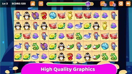 动物连接拼图,你的任务是用你的手指画出的线连接相同动物的块,然后你可以通过点击消除这些图案。玩法类似于小乐的游戏玩法。它适合所有玩家玩一个简单的游戏。众多的等级让你在家里无忧无虑,这主要取决于你的观察能力。这个游戏更适合年轻玩家,操作简单,益智游戏的目标很容易理解,孩子们在休闲娱乐时可以掌握很多关于动物的小知识,一石二鸟。