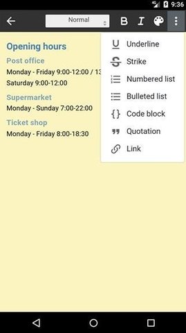 ✔存储笔记到您选择的在线存储(自我托管),这使得他们之间的设备同步,并提供一个简单的备份。