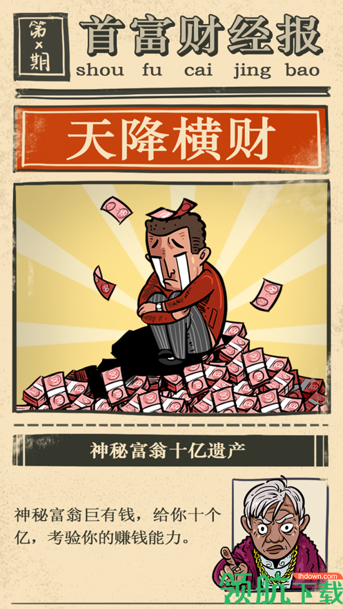 首富特烦恼游戏是一款模拟经营类休闲游戏,在游戏中你将被惊喜砸中,你要在规定的时间内花光10个亿,按照正确的花钱渠道并花光,你就能成为某个远方亲戚的巨额财产,成为亿万富翁,游戏玩法简单,你要想尽一切办法在30天内将这10个亿花光,并且要按照游戏规则玩,每天一睁眼你要想的就是花钱。