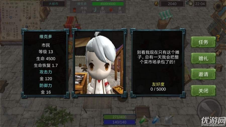 游戏中的所有中立单位均可以攻击或邀请。邀请两个小伙伴帮助自己完成任务是游戏中的关键,当然,在邀请之前需增加友好度,而且高等级NPC必须达到指定等级才可邀请。