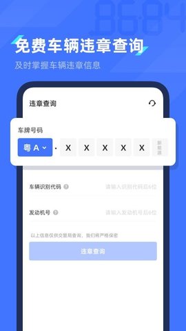 用户能使用这款app来查询自己的车辆违章情况,包括扣分,罚款等,用户在上面添加自己的车辆信息就能进行查询了,而且都是免费查询,非常方便,可以添加不只一辆车,还能缴纳罚款,查询自己的驾照分和免费etc服务等,拥有许多周边服务,查看实时路况和车管所等。