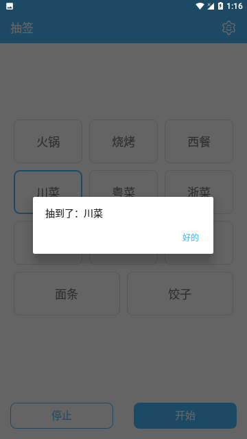里面有各个选项,然后点击开始就可以随机地进行抽签;