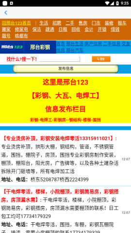 邢台123 app是邢台地区的门户分类网站,涉及有生活、二手、房产、招聘等四十余个栏目,是邢台人民最信赖的地方网站,日访问IP现已5万,访问量40万PV。