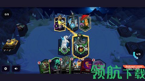 2、玩家控制一个英雄与敌人(人类或AI)战斗,玩家都使用可以与召唤到比赛场地的卡片进行战斗,合理使用这些卡牌。