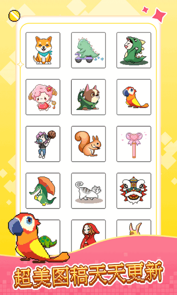 像素小画家每日为你准备全新的精美像素图画等你数字涂色,涂色完成后与好友一起分享像素佳作。