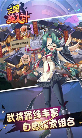 《三国美人计》是一款以三国题材制作,侧重战斗和英雄养成,包含多种技能、装备、宠物等元素的3D动作卡牌游戏。是对三国游戏的全新演绎!有深度!有策略!可单机可联网的沉浸式实时战斗游戏。乱世三国的王城争霸随时火爆来袭,各大势力之间热血厮杀乱斗PK酷炫华丽合击技能让你自由搭配,独创色彩的武将培养系统,极致的走位操控让你随时掌控全局,让你身临其境的体验三国世界的独特风采。