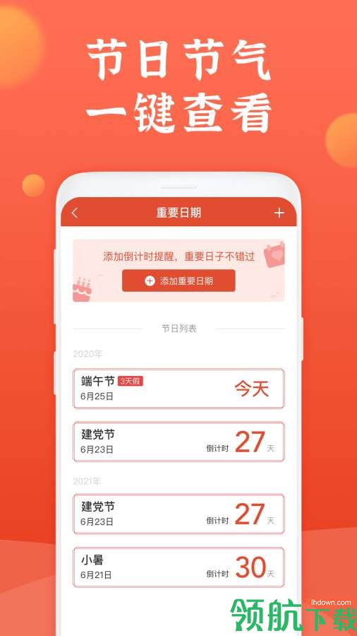 1、万年历:精美准确的日期展示,完整的节日日历查询,节假日、调休调班清晰备注,更有二十四节气、传统节日、热门国际节日等,不错过任何一个重要的日子。