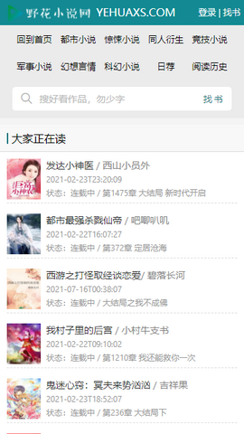 野花小说网是一款能帮你阅读各种各样小说的一款在线阅读软件,在这里看小说十分的方便,汇聚了国内各种精品小说资源,为你带来大量的优质小说,每天更新上万部优质作品,欢迎大家下载!