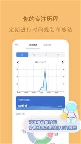 查看往期时间分配情况定期进行时间规划,用这种休闲娱乐的方式逐渐形成稳定规律的专注习惯。