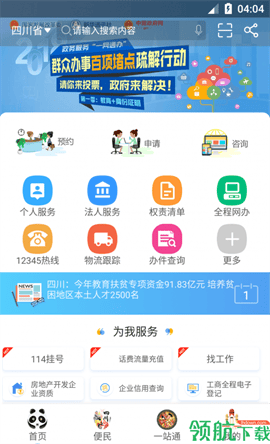 可以轻松办理政务相关事务,里面提供的服务项很多,随时都能在线预约,轻松查询、办理,操作十分便捷,如果有需要的话,欢迎来上四川政务服务app使用看看,软件界面布局简约,所有功能可以免费使用