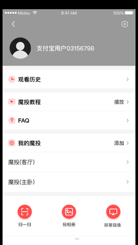 天猫魔投手机版是专为天猫魔投硬件设备推出的专属应用。使用该App,您可以为天猫魔投硬件设备配置网络。在天猫魔投连接到电视后,当您的手机和天猫魔投处在同一无线局域网时,可轻松的通过手机与大屏互动,把手机中的视频、音频等内容投放到电视中播放。