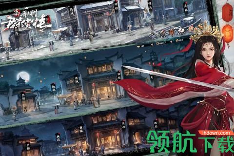 徽州建筑风格艺术在日夜交替、风、霜、雨、雪、粒子动态效果中展现了江湖的动态美。江湖上,人贩子、士兵和游侠四处游荡。泼墨泼墨,2D写实水墨风格,高品质艺术。江湖如画卷般美丽,一笔一划地展现着侠客的风采。