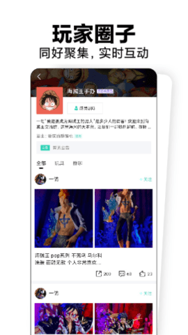 【玩家圈子】专属于模玩爱好者的兴趣圈子磕物将兴趣相同的模玩爱好者聚集在一起,建立属于模玩爱好者的专属兴趣圈子,如:漫威、DC、海贼王等,让模玩爱好者高效找到组织,与同好分享更专业更垂直的玩具内容,在讨论中获得共鸣、找到归属感。