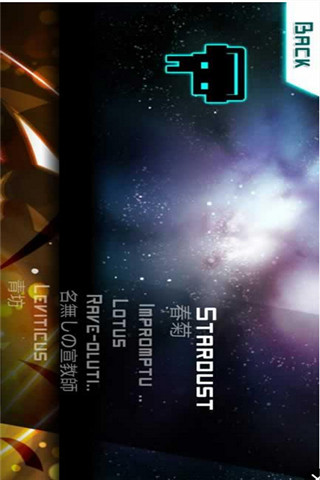 超过30原创音乐创作的香港作曲家现在已经包括在内。音乐风格以电子音乐为主,包括trancecore、hardcore、glitch、Oriental、Chiptune等,未来将增加更多元化的音乐风格,包括Dubstep、harmony、Psytrance、Breakbeat等,游戏包含100多个频谱平面,逐渐从入门级的基础级升级到高级玩家不觉得无聊的硬级,甚至超越了定制的超难谱面“mega”和“Giga”。