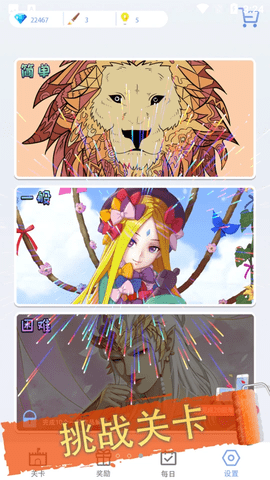 一款趣味涂色的解压类娱乐工具,花花创意填色app提供多种二次元卡通漫画作品,可以使用各种颜料笔进行颜色的填充。