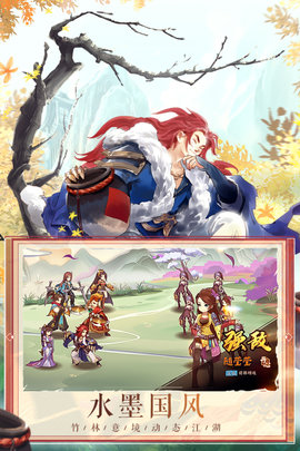 2、游戏中采用卡通风格2D画面打造,以国风武侠为题材,并融入了策略,养成,卡牌,剧情等元素,等你来品鉴。