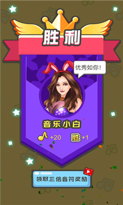 4、通过关卡领取奖励,得分高的领取的奖励更丰厚,还能选择领取三倍的音符奖励。
