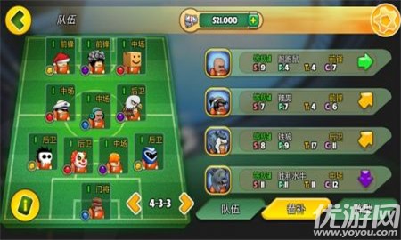 3.游戏采用经典足球主题,不断招募和训练球员,提高角色能力助你赢得胜利。