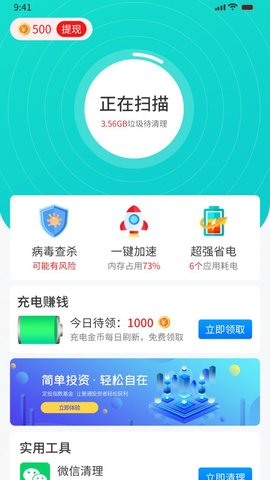 4、支持一键全面的扫描手机,一键快速的无死角清理手机垃圾。