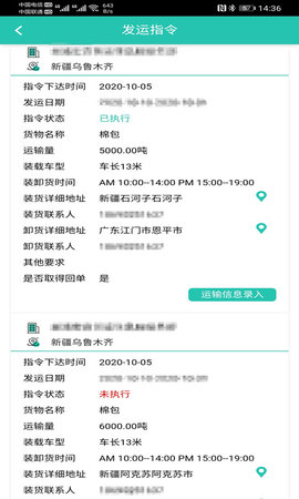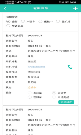 2、货源详情,每个货源的装货地址与卸货地址、货物类型、运费价格等都能知道。