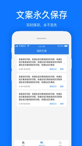 文案提取app,手机免费文案提取神器,复制链接,一键提取文案,使用简单,还支持录音转文字、视频提取文案、文案编辑功能,让文字识别提取更省心。