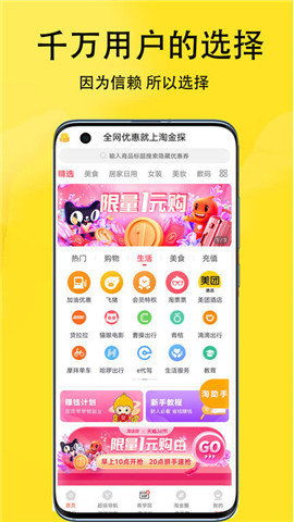 淘金探是一款超级好用的手机在线购物软件,在这里你可以轻松领券购物,超级优惠方便,在这里拥有各大电商的各种大额优惠券,购物用券省钱又省力,欢迎有需要的小伙伴们下载!