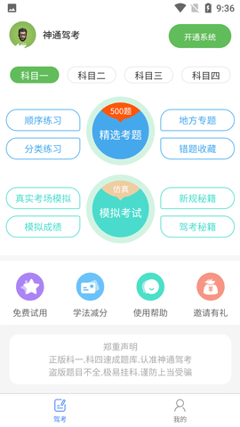 1、神通驾考app科目一到科目四的练习内容这里全覆盖,线上的学习更加的便捷直接