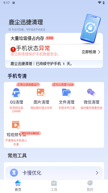 迅捷清理大师是一款超级好用的手机系统清理软件,在这里你可以很轻松的清理自己手机里的垃圾文件,国内强大操作简单,每天都能为你的手机保驾护航,欢迎大家下载!