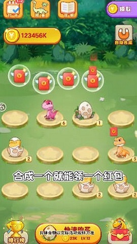 恐龙庄园2红包版是一款超级好玩的合成领取红包的恐龙趣味养成游戏。这里上线就可以领取恐龙蛋,玩家只需要细心地培育孵化的小恐龙,不断的进行合成升级的操作就可以完成任务领取红包哦。快来下载体验吧。