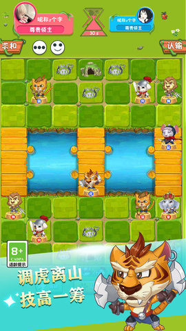 3.要获胜,您必须占领另一侧的动物巢穴才能获胜,狮子和老虎可以过河,老鼠可以游过河。