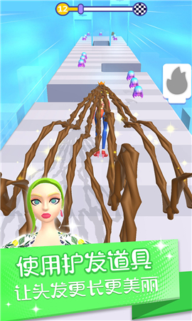 3、独特的跑酷休闲手机游戏。只需使用手指控制角色的方向,获得道具并避开障碍物,以防止长发受损。