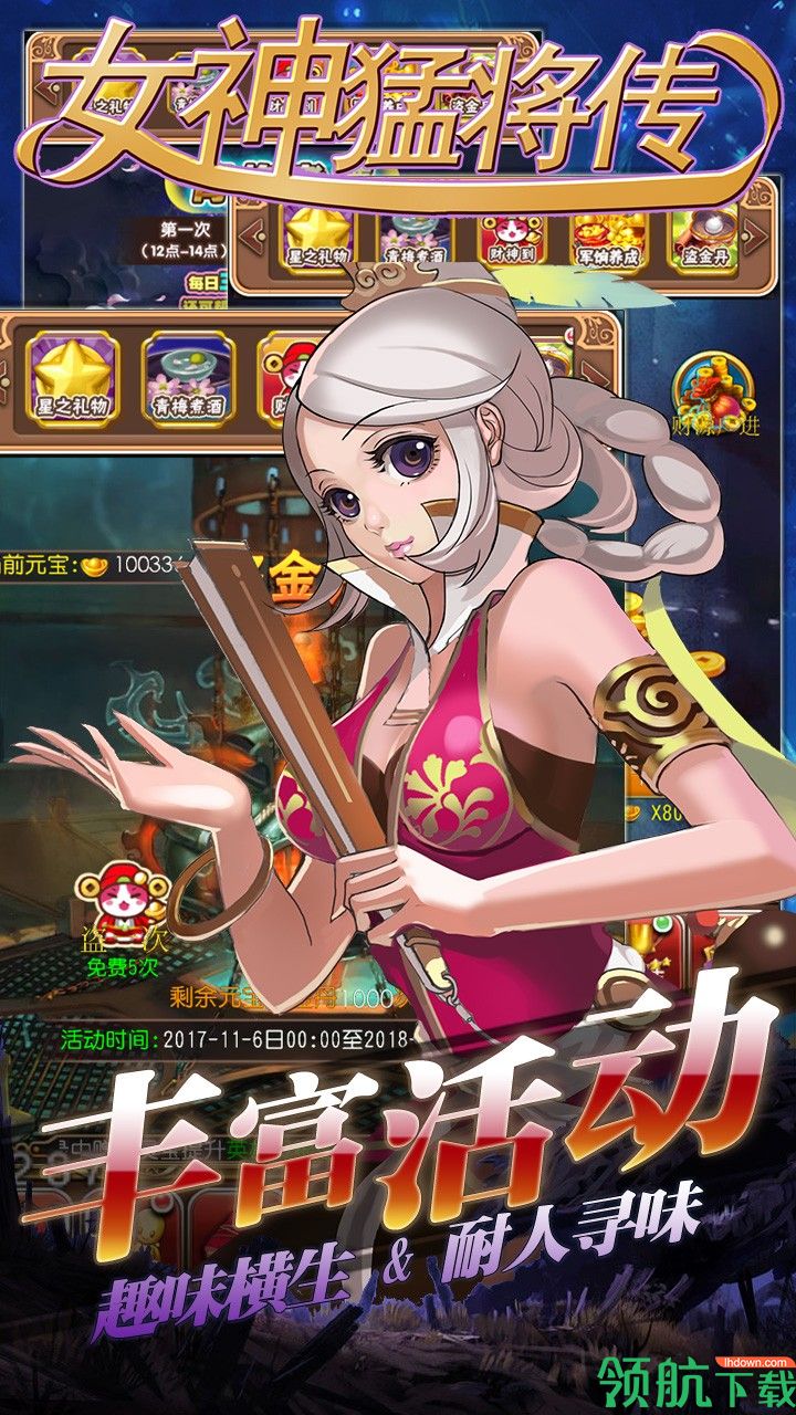 《女神猛将传》是一款全部为女性角色的养成类部落手游,轻松有趣的剧情任务、休闲可爱的画风、百套装扮自由搭配、超多角色抽卡获得、简单易上手的操作,给您带来满是欢乐的少女角色养成体验。这次的版本更是加上了趣味答题的全新休闲玩法,带上自己喜欢的妹子一起赢下答题的比赛吧!