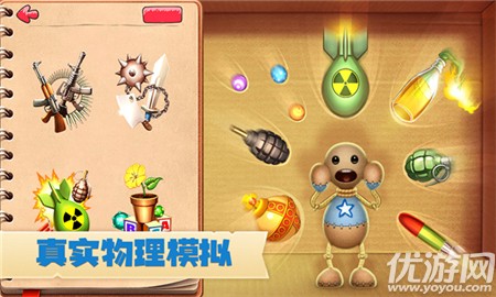 1.Q版可爱卡通木偶人,提供多种道具供你使用,并对木偶人进行暴力破坏和攻击。整个操作过程特别减压,易于释放内部压力。