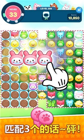 美丽的图片和多彩的游戏风格,狗、兔子、猪和其他可爱的宠物!钻石、爆炸炸弹、彩色油漆罐、锁好的笼子和五颜六色的游戏元素可以在突破多个关卡后解锁惊人的促销道具和奖金。
