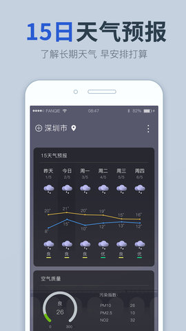 七日天气APP,一款定位准确各地的天气预报软件。该软件支持超长时间检测,可以帮助用户查看未来15天的天气。灵活应对各种温度变化,临时降雨降温和高温天气会在第一时间改变并推送信息