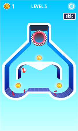 2、游戏玩法十分简单,吃掉关卡中的金币增加分数,只要保证球球到达洞口即可。