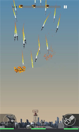 导弹拦截是一个适合所有玩家畅玩的射击游戏。你需要通过射击拦截导弹,让导弹提前爆炸,守护自己的家园,游戏考验玩家的眼力以及手速,你必须更快的对导弹做出反应,赶紧下载游戏体验吧!