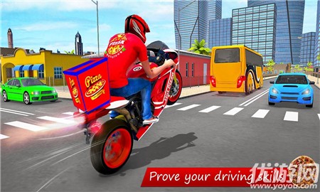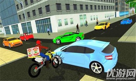 1、在匆匆忙忙的路上拿出你的披萨自行车送游戏,然后在交通繁忙的蜿蜒街道上骑。