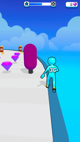 不断跑酷挑战,积累经验,避开危险和障碍物,冲刺到终点;
