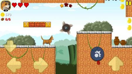 1、通过左侧的虚拟摇杆来操作柴犬进行左右移动。
