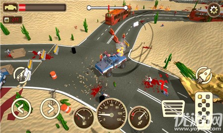 1、在游戏中驾驶着车辆去粉碎僵尸,消灭所有道路上的敌人,这就是你的任务!