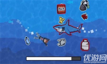 1、像素卡通世界,进行海洋的清理工作,完成更多任务;