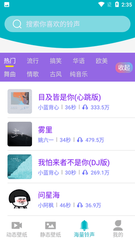 搜索栏中对于自己喜欢的铃声内容进行搜索,然后就可以十分容易的找到各种的铃声资源信息了。