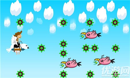我要带你去危险的鸟类之乡冒险。这里有各种致命的机制和障碍。你应该驾驶鸟类灵活地避开这些机制和障碍,并获得最多的金币。如果你不小心遇到了机械装置,一切都不应该发生。只有你得到的金币数量才能证明你的实力。你敢挑战这个危险的鸟类国家吗