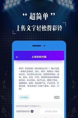 2、超简单:上传文字轻松得彩铃