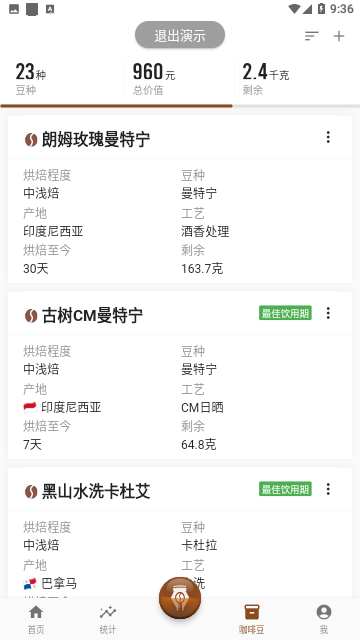 享咖小记app,咖啡的冲煮过程记录软件,记录每一杯咖啡的冲煮过程、味道等信息,智能统计分析,根据统计结果,不断改善咖啡冲煮流程,帮您冲煮出味道最佳的咖啡。