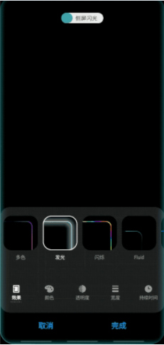 下拉状态栏,找到侧屏闪光快捷按钮,长按,进入侧屏闪光设置菜单。