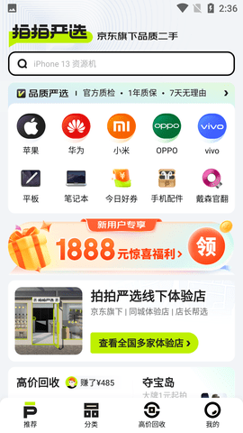拍拍严选:领先行业的品质承诺——越来越多的二手商品,京东3C、数码、手机…享受7天退换、180天质保!二手手机,电脑,平板,相机,尽管放心用!