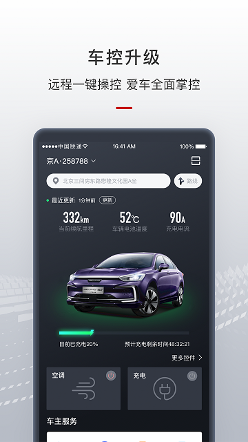 智惠管家app搭载独有的控车功能,可直接远程预约空调开关、调节温度、预约车辆充电开关,实用性极强。