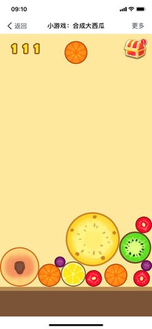 1、当两个水果一样并且发生接触时,就会合成一个更大的水果,最终会合成一个大西瓜。